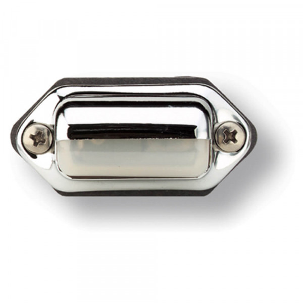 Feu utilitaire intérieur de 12 V interior au fini chromé avec fil de mise à la terre séparé et coiffe de protection réduisant l'éblouissement. Boîtier en acier avec lentille en polycarbonate.